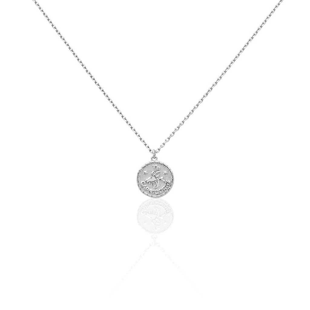 Collier Argent Blanc 925/1000 Pastille Signe Du Zodiaque Capricorne Maille Forcat 55cm