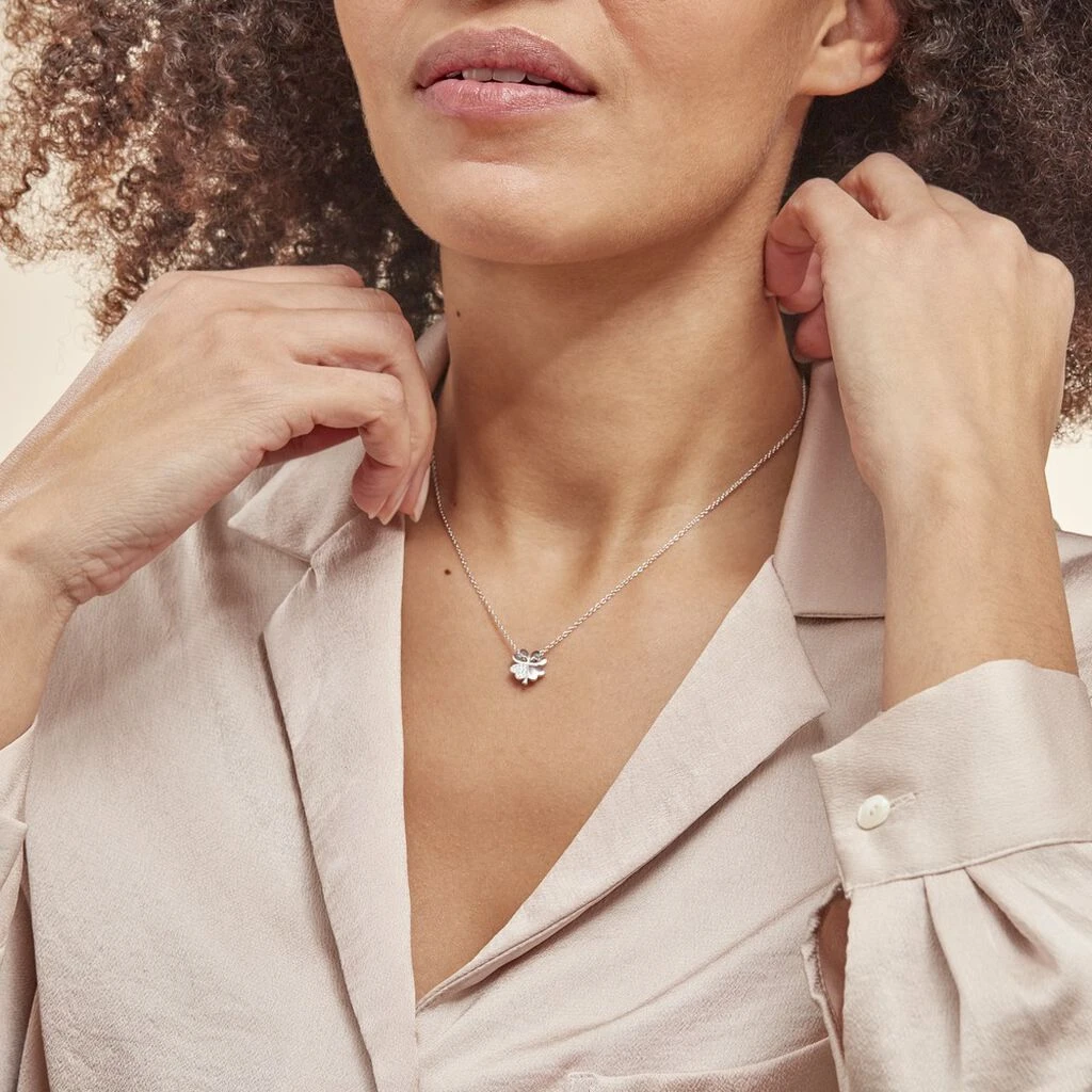 Collier Argent Blanc 925/1000 Trefle 4 Feuilles Pavage Oxydes De Zirconium Maille Forcat Traversante 42+3cm