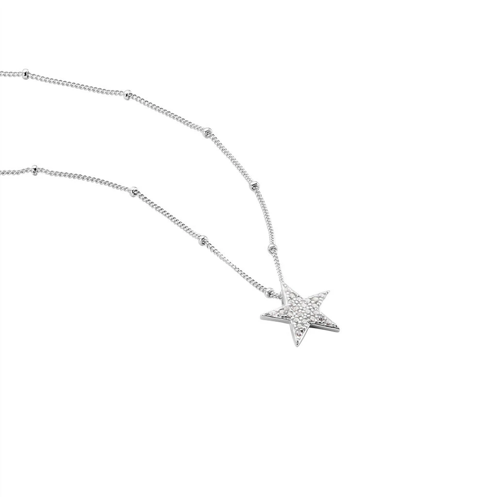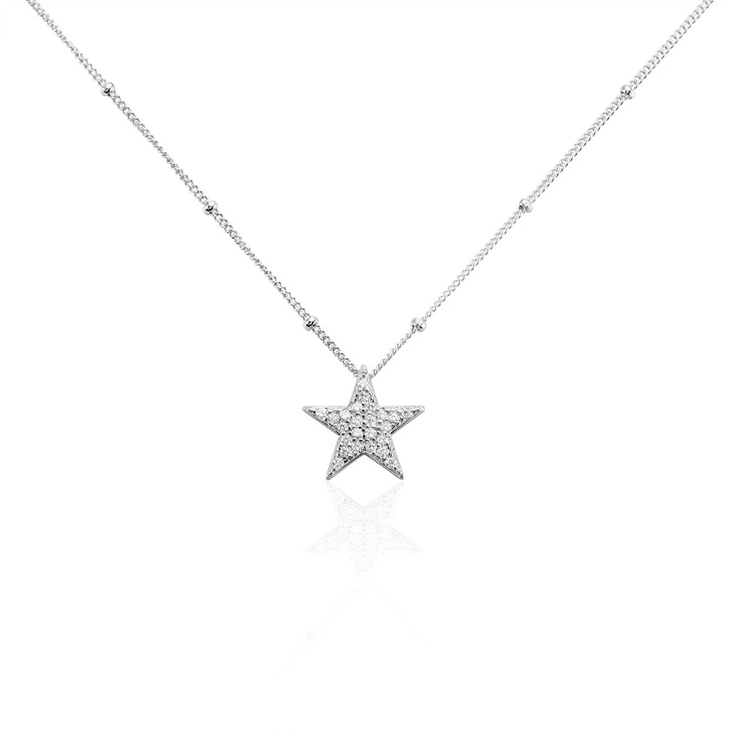 Collier Argent Blanc 925/1000 Etoile 5 Branches Pavage Oxydes De Zirconium Maille Boules 45 Cm