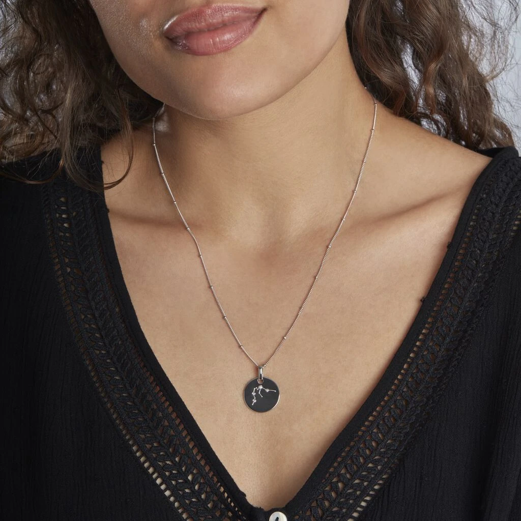 Collier Argent Blanc 925/1000 Pastille Zodiaque Verseau Boules Sertis Clos Oxydes De Zirconium Maille Forcat 50cm