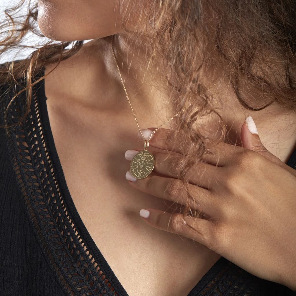 Collier Plaqué Or Jaune Forme Ronde Signe Du Lion Chaine Forcat 44cm