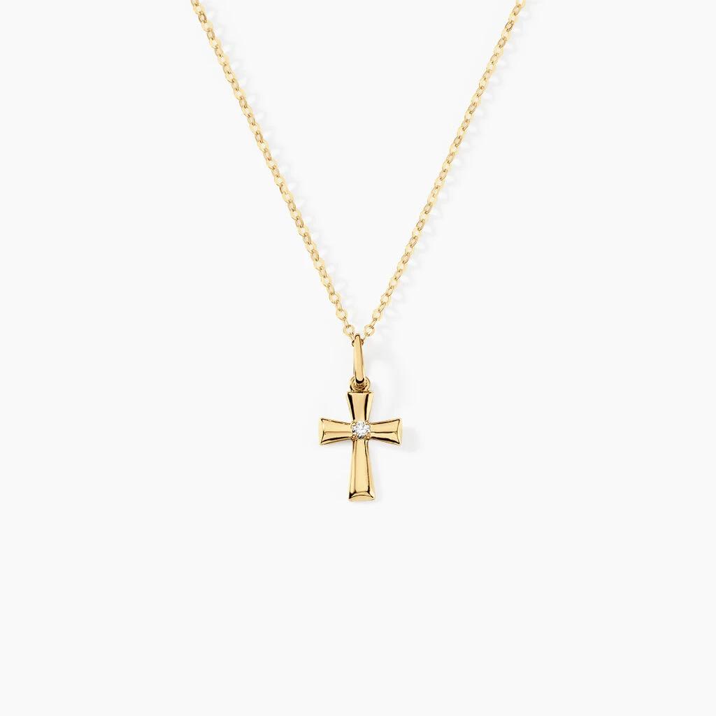 Collier Or Jaune 375/1000 Motif Croix Oxyde De Zirconium Maille Forçat 42cm