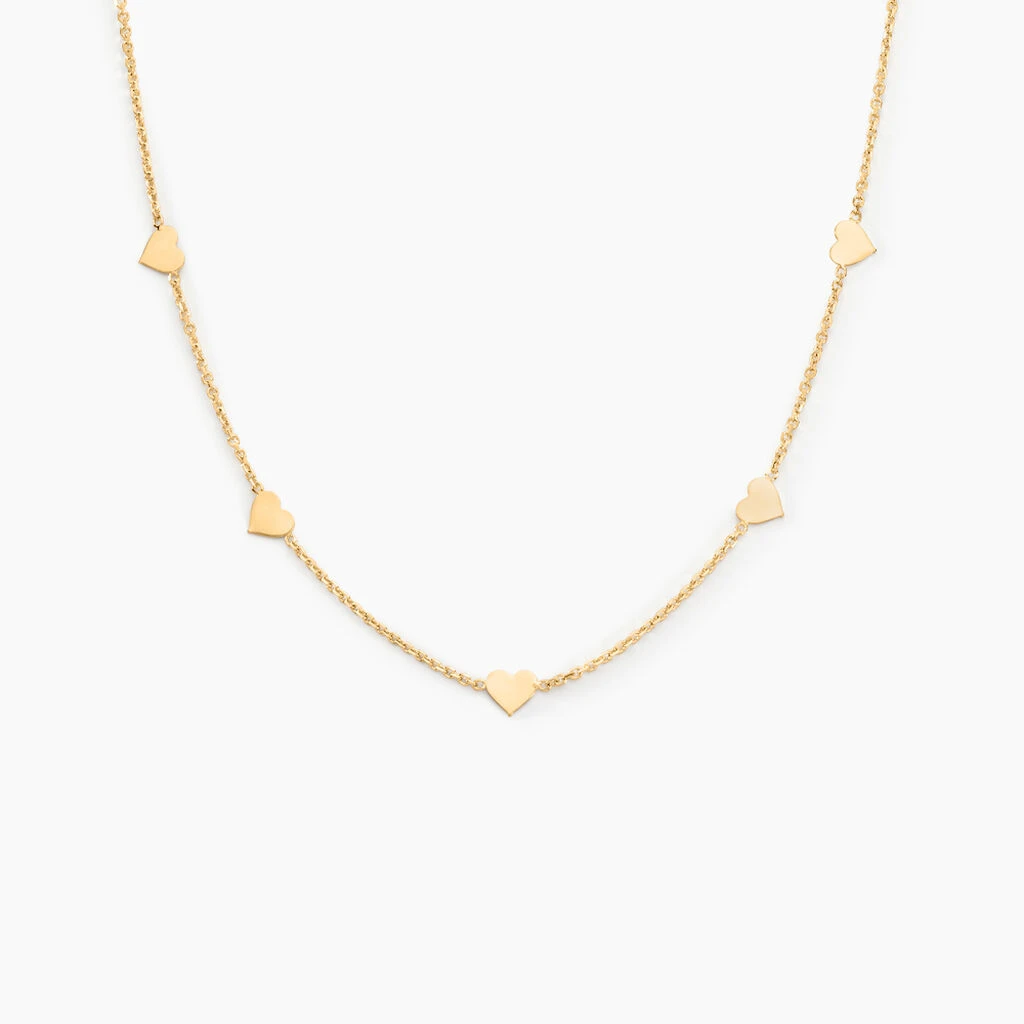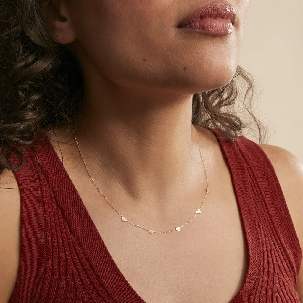 Collier Or Jaune 375/1000 Multi Cœurs Maille Jaseron 42cm