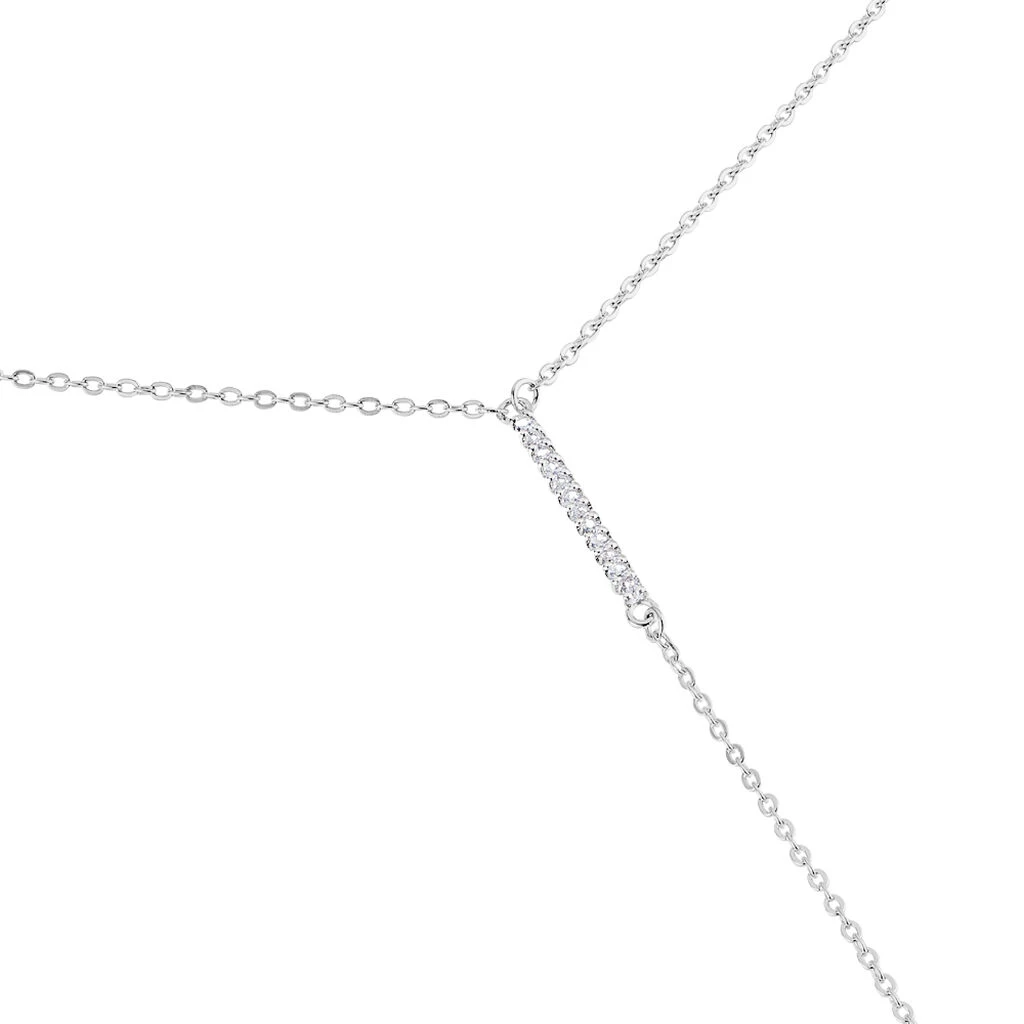 Collier De Dos Argent Blanc 925/1000 Barrettes Micro Setting Oxydes De Zirconium Maille Forcat Longueur Mi Dos 66+12cm
