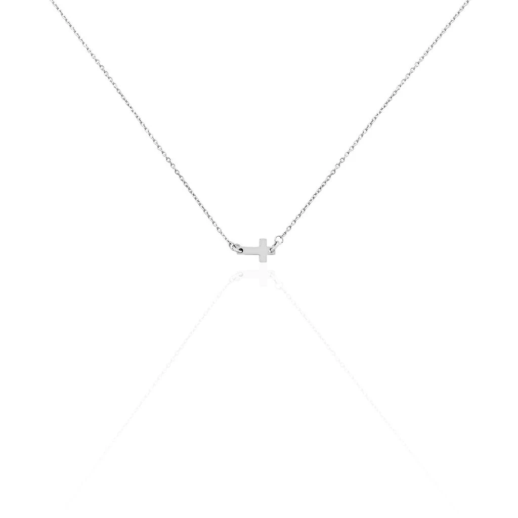Collier Argent 925/1000 Forme Croix Motif Cote 42cm