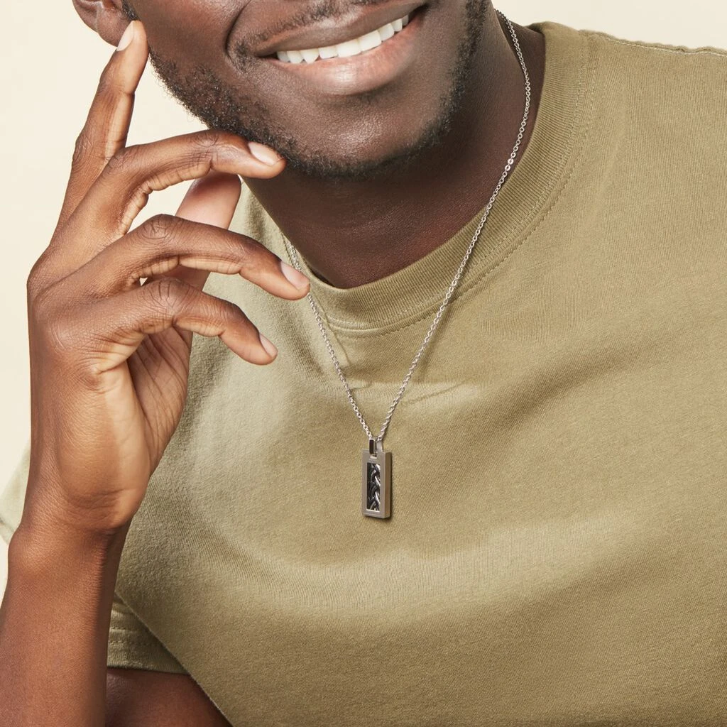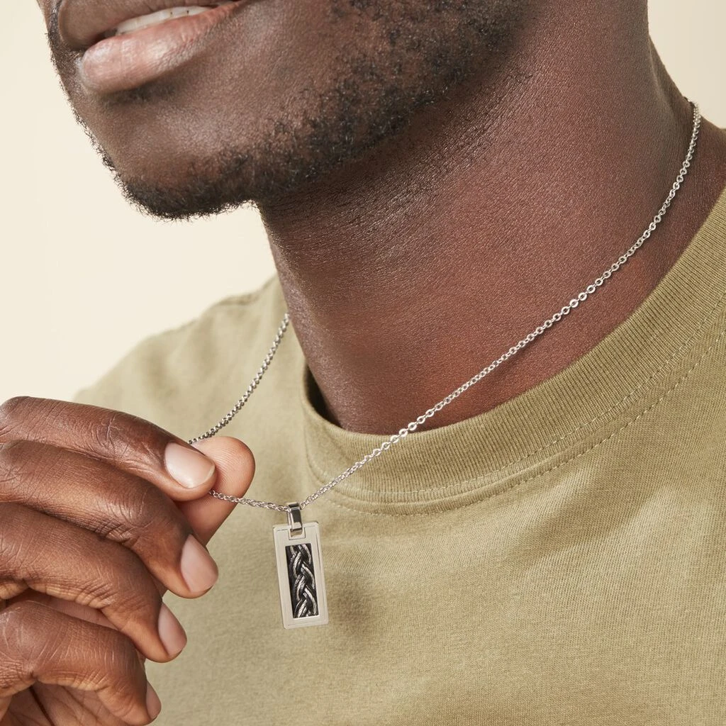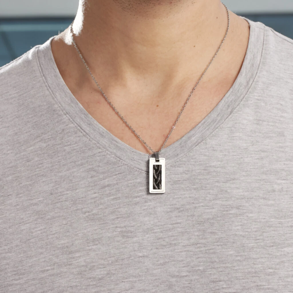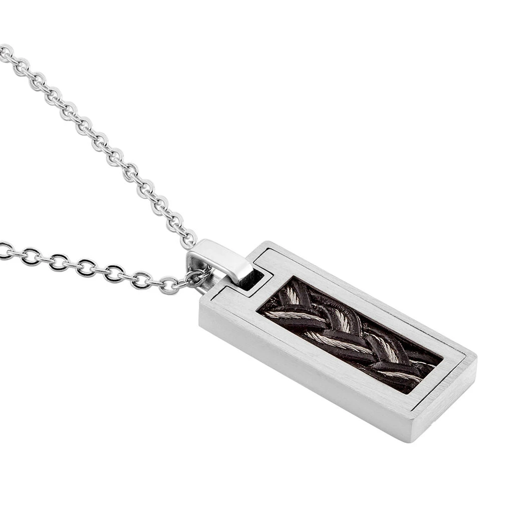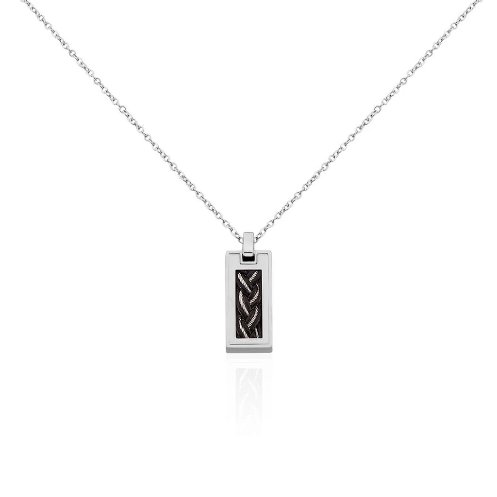 Collier Acier Blanc Interieur Cordon Ciré Et Acier Effet Rail 50cm