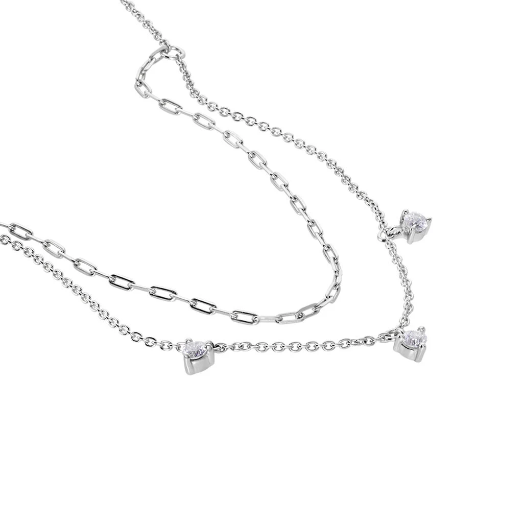 Collier Argent Blanc 925/1000 Double Chaine Pampilles Oxydes De Zirconium Maille Forcat 39cm