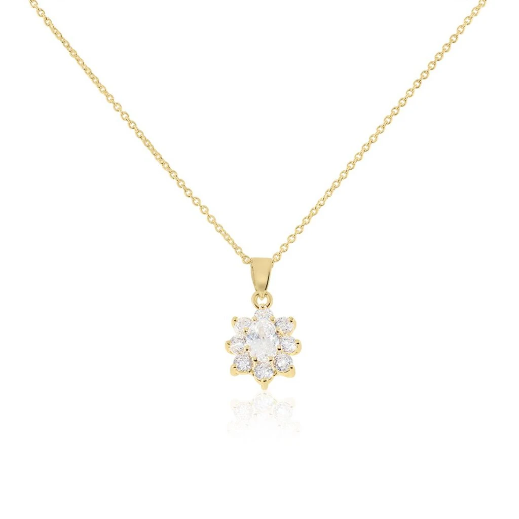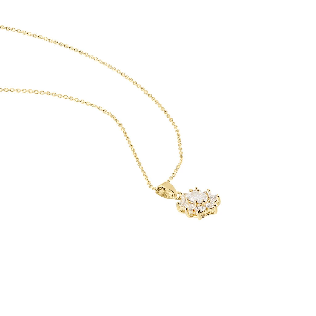 Collier Plaqué Or Jaune Entourage Marguerite Oxydes De Zirconium Chaine Forcat 44cm