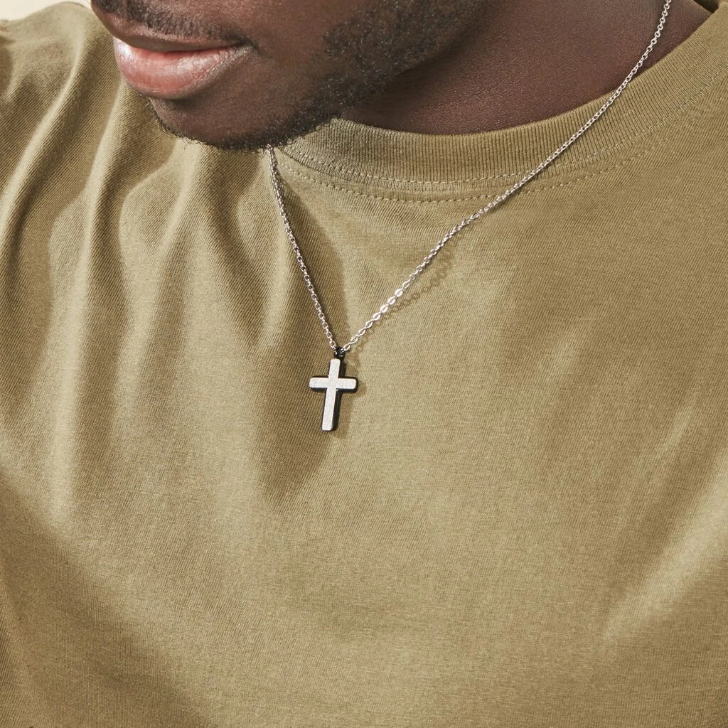 Collier Acier Blanc Forme Croix Dominante Grise 50cm