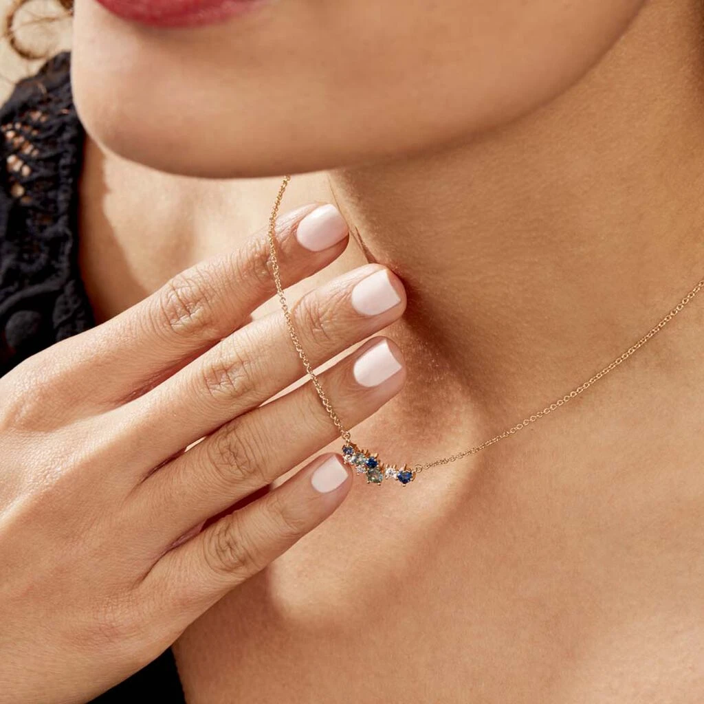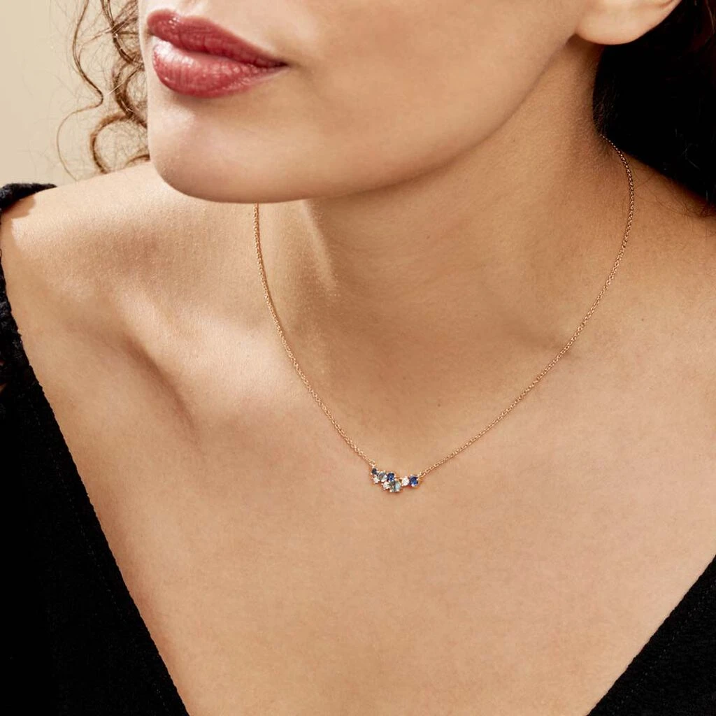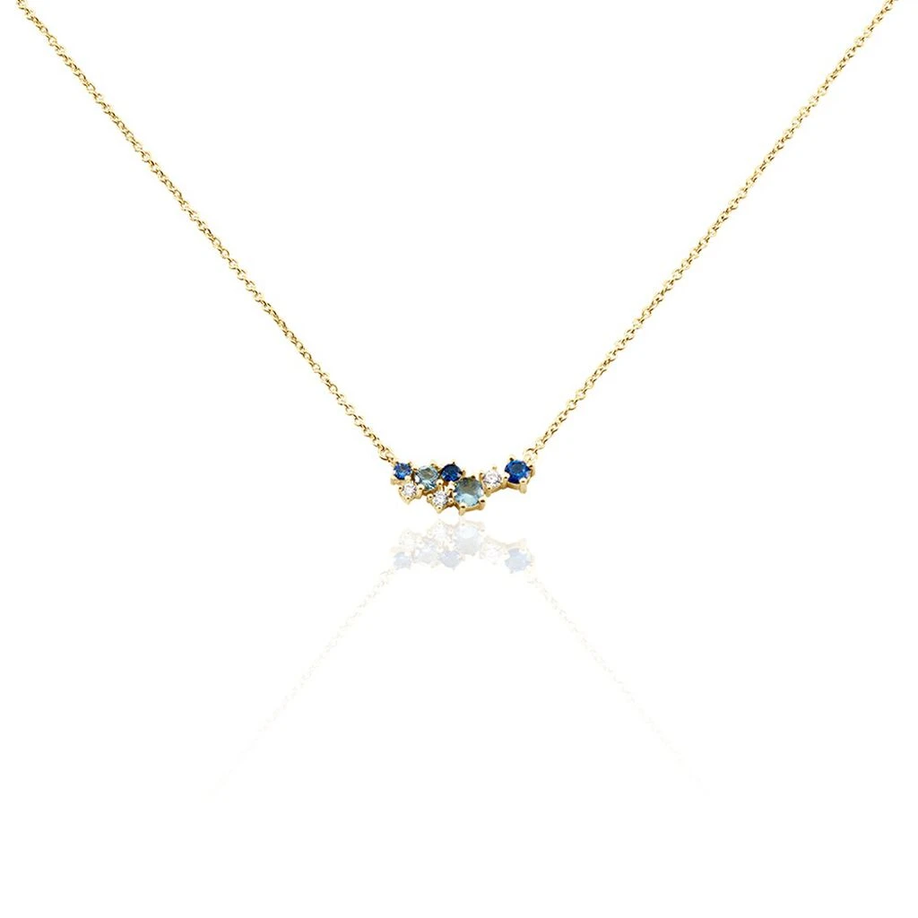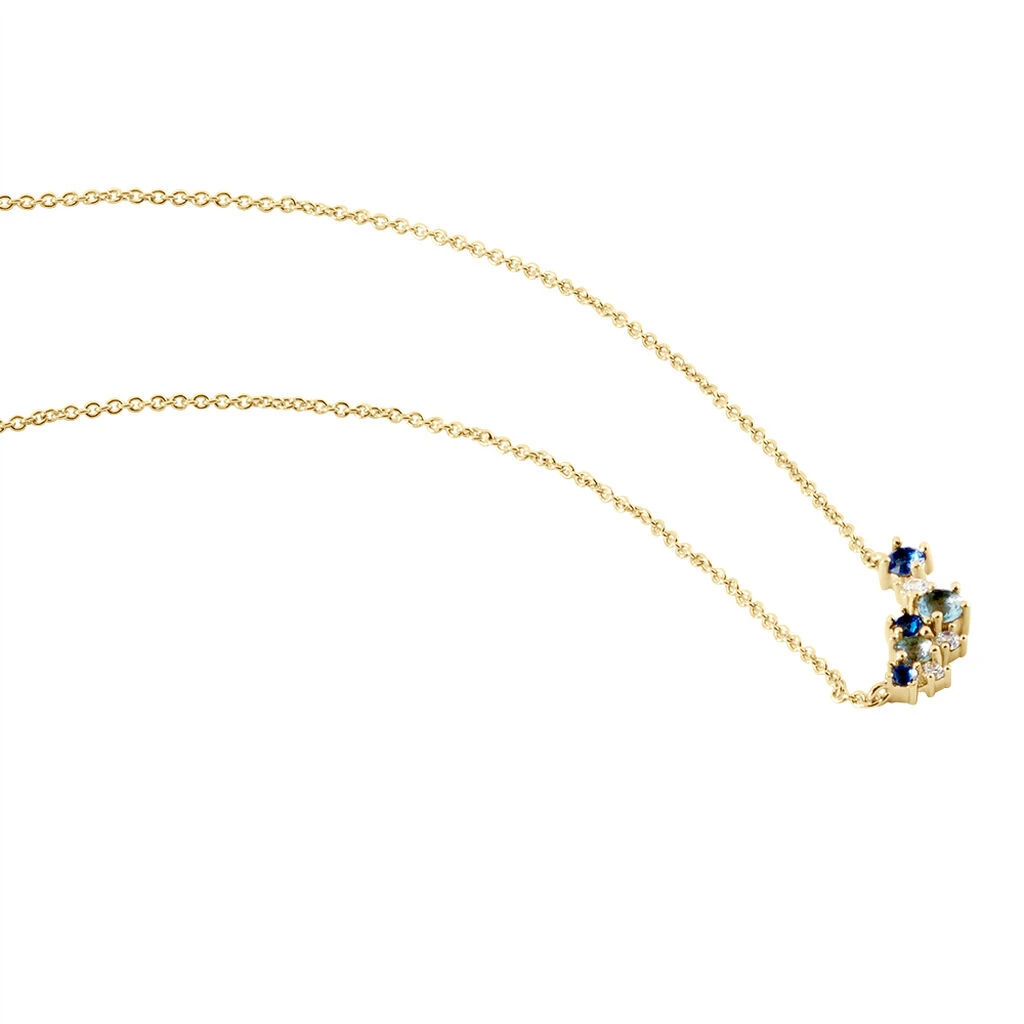 Collier Plaqué Or Jaune Barrette Multi Pierres Artificielles Bleues Maille Forcat 40+4cm