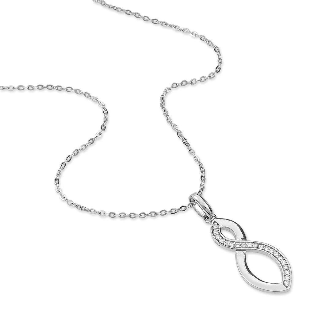Collier Argent Blanc 925/1000 Pendentif Motif Inifini Oxydes De Zirconium Chaine Maille Forcat 42cm