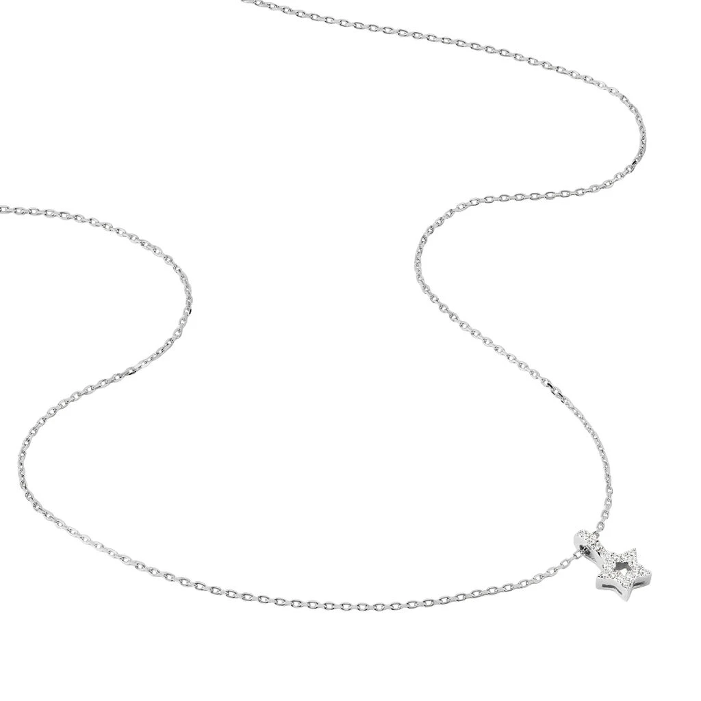 Collier Argent 925/1000 Etoile Ajoure Pavage Oxyde 45cm