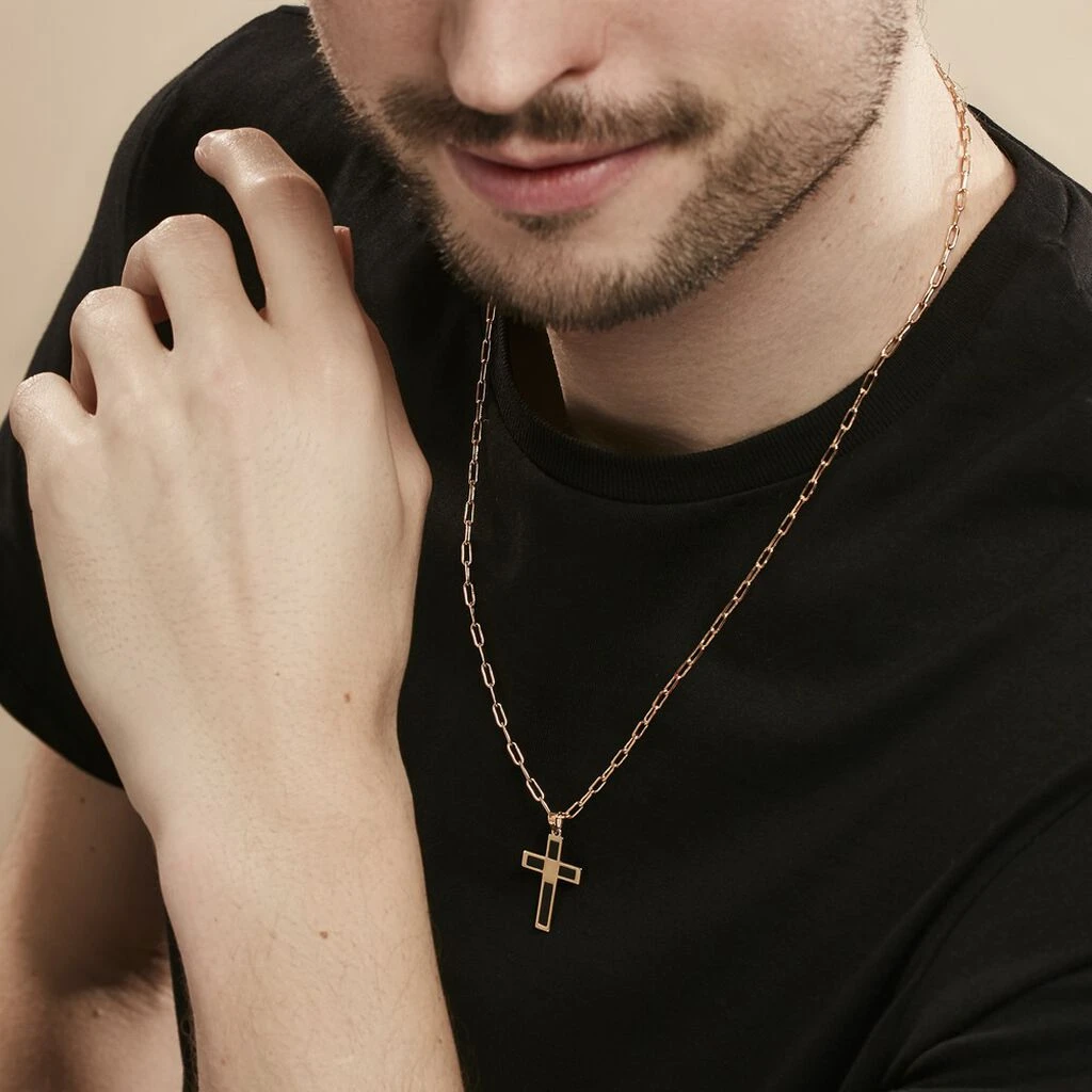 Collier Plaqué Or Jaune Croix Email Noir Maille Cheval 55cm