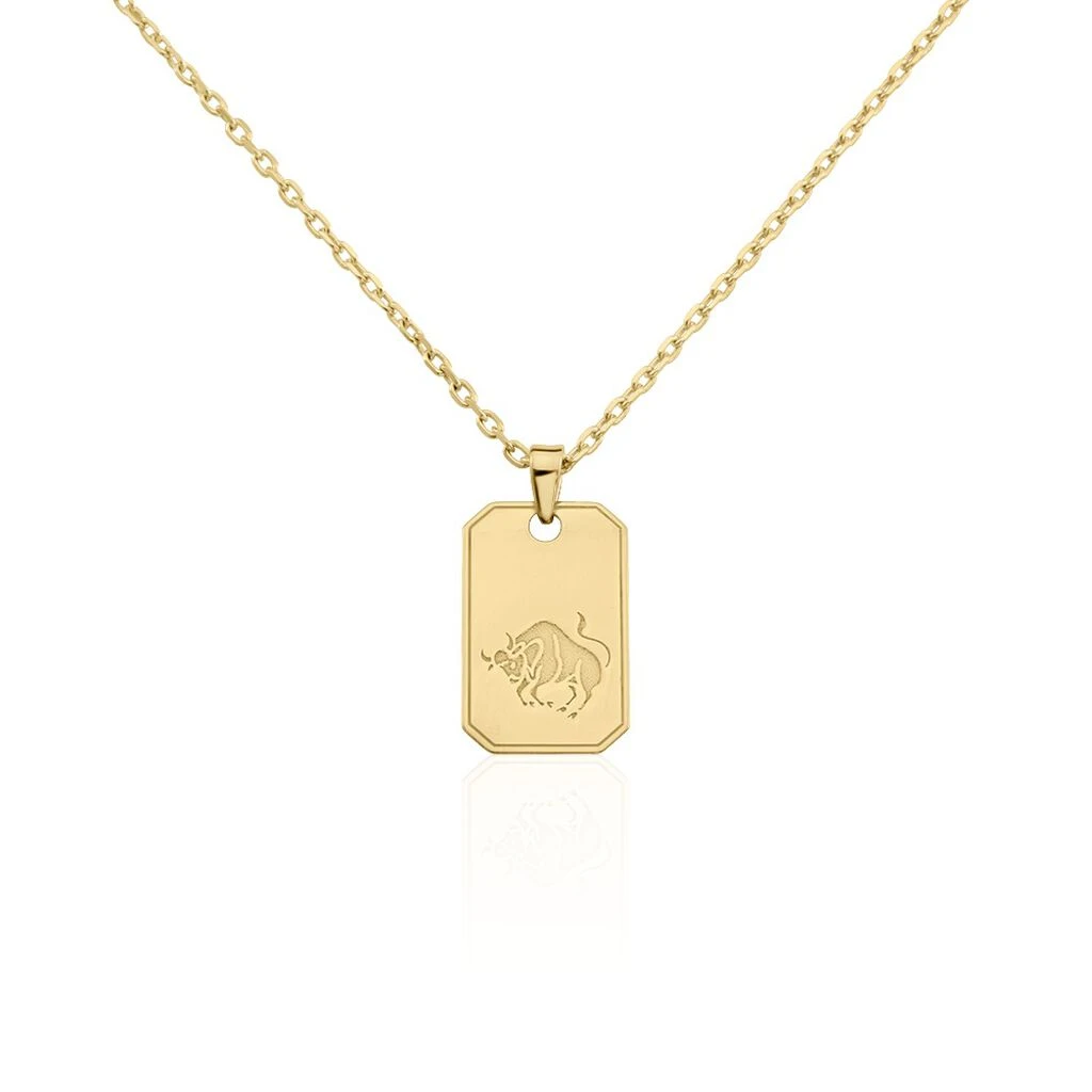 Collier Plaqué Or Jaune Plaque Gravee Signe Astrologique Taureau Maille Forcat 50cm