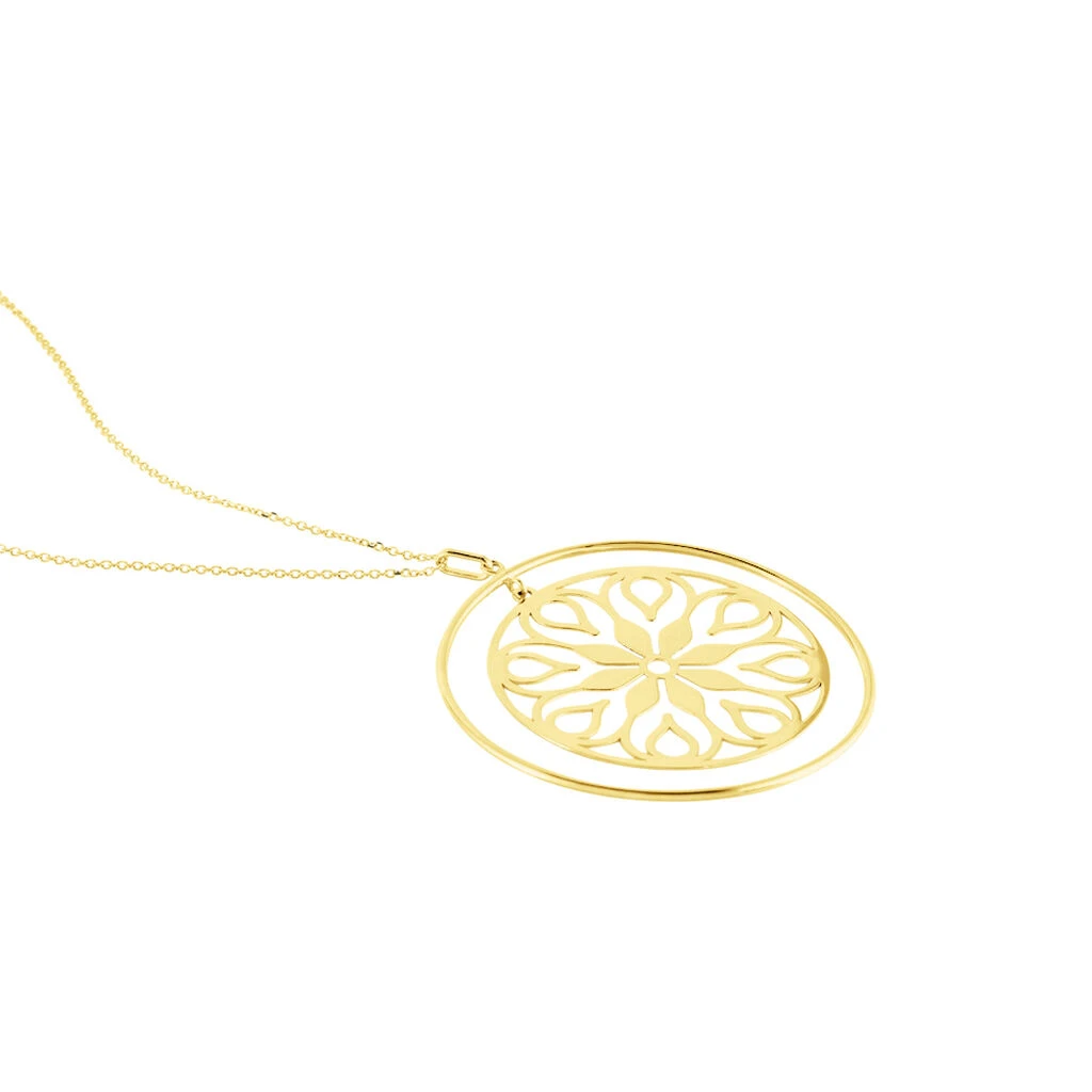 Collier Or Jaune 375/1000 Motif Rosace Ajouree Maille Jaseron 70cm Gm