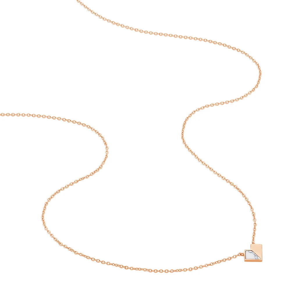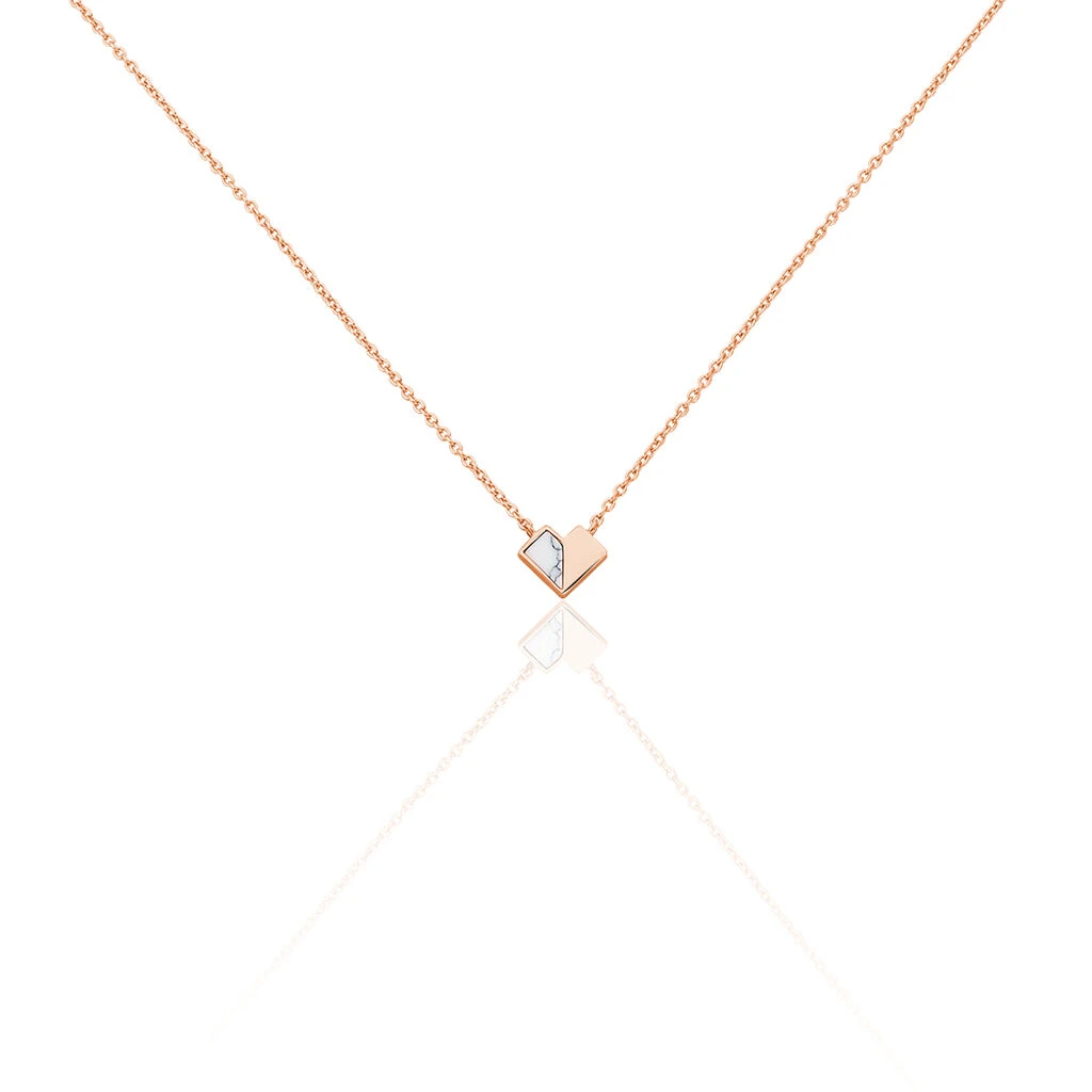Collier Argent Rose 925/1000 Motif Cœur Geometrique Turquoise Blanche 38cm