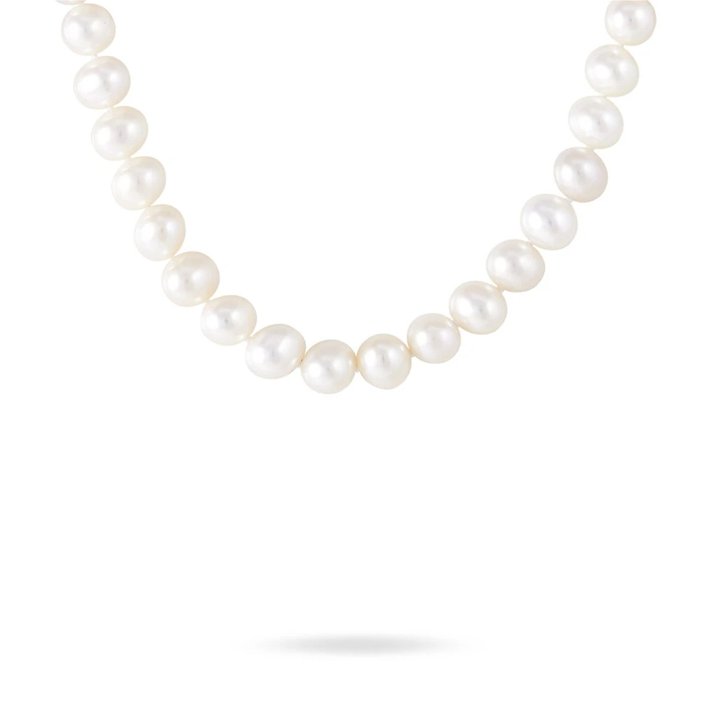 Collier Or Jaune 375/1000 Perles De Culture 8/8.5mm Baroque Blanche 60cm