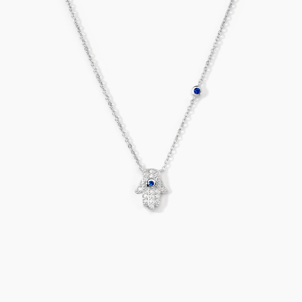 Collier Argent Blanc 925/1000 Main De Fatma Oxyde Bleu 42cm