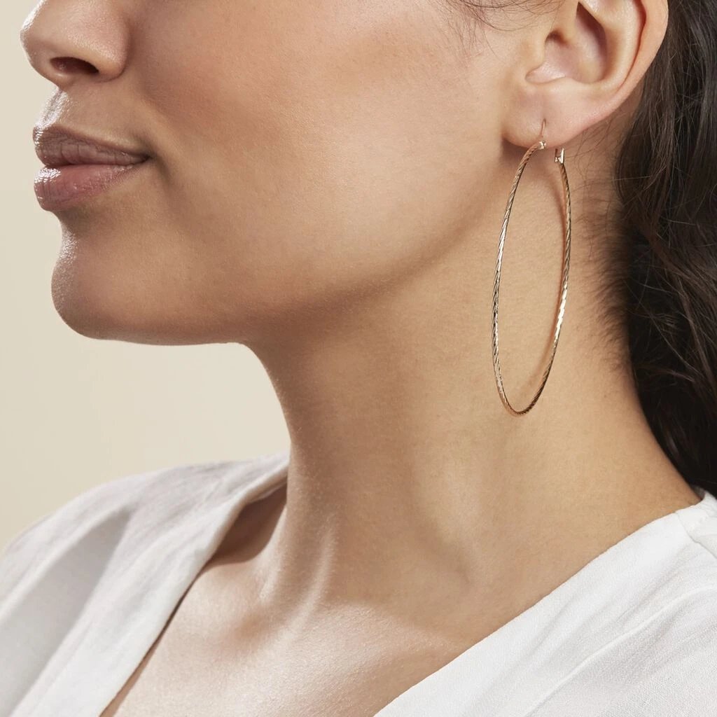 Creoles Plaqué Or Jaune Effet Diamante Diametre 70mm