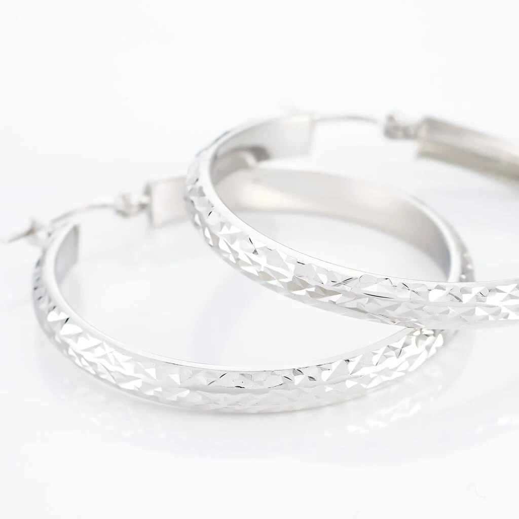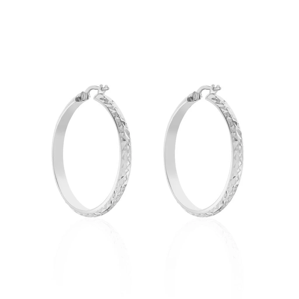 Créoles Argent Blanc 925/1000 Fil Plat Diamante Largeur 4mm Diametre 30mm