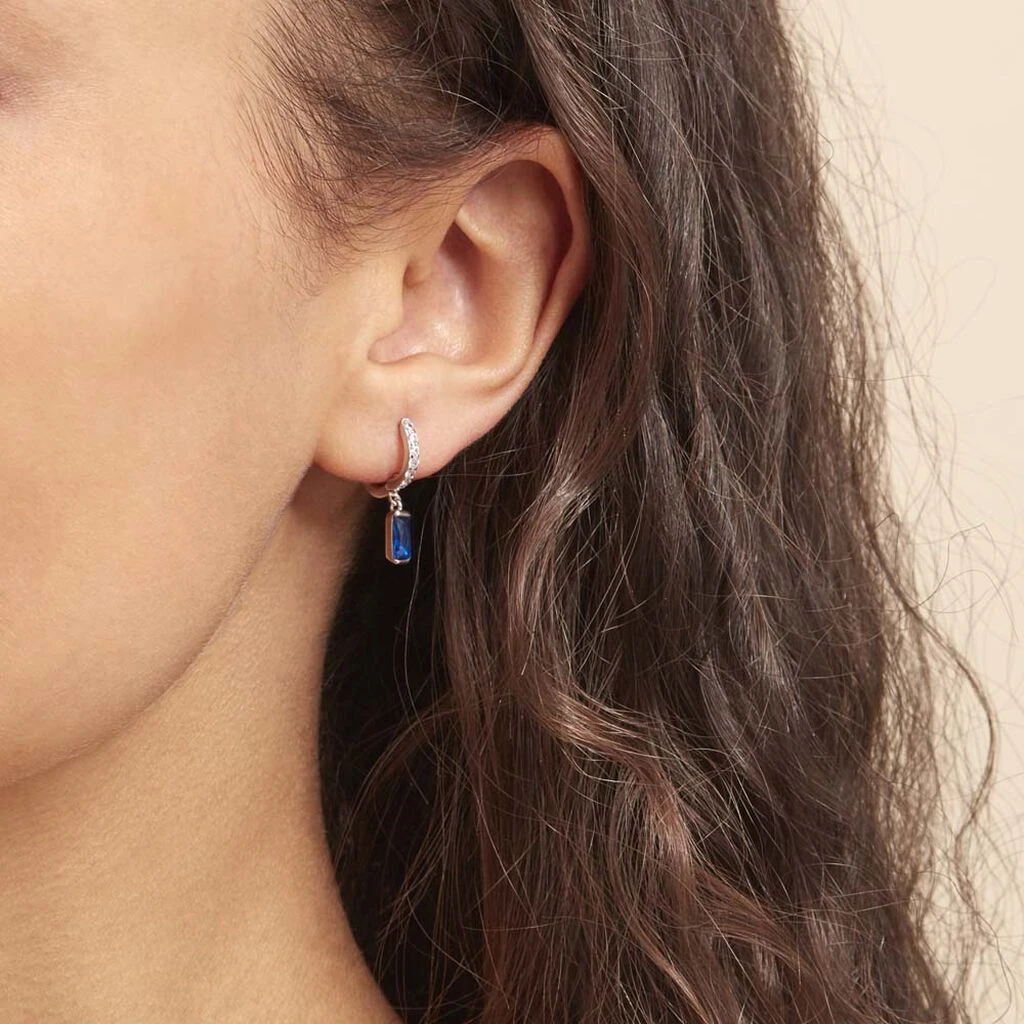 Creoles Argent Blanc 925/1000 Pavage Oxydes Pampilles Rectangles Bleus Serti Griffes Oxydes