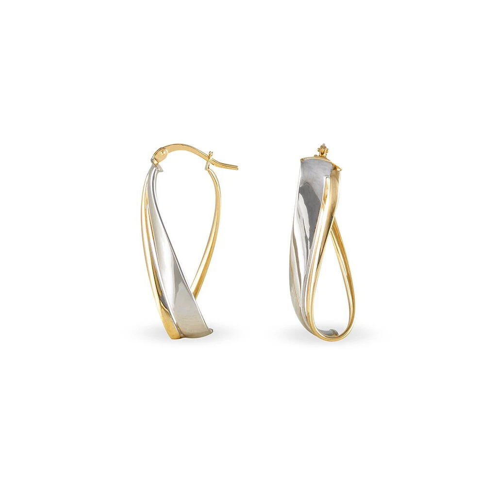 Créoles Or Bicolore 375/1000 Ovales Fil Plat Vrillé Lisse Largeur 4mm Diamètre 27x10mm
