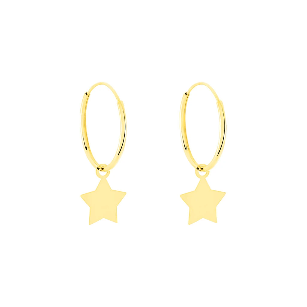 Créoles Or Jaune 375/1000 Pampilles Etoiles Fil Flexible Lisse Largeur 0.8mm Diamètre 11mm