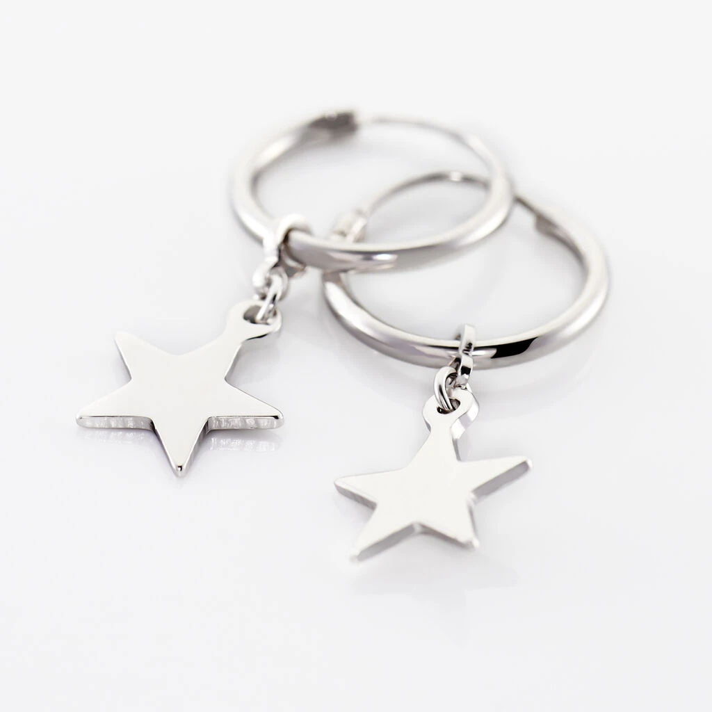 Creoles Argent Blanc 925/1000 Pampilles Motifs Etoiles Diametre 12mm