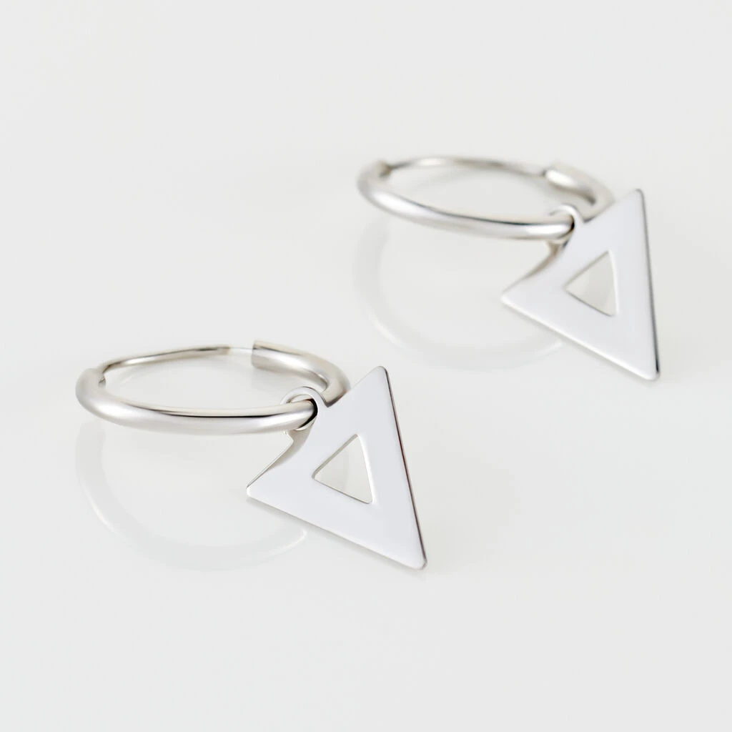 Creoles Argent Blanc 925/1000 Pampilles Triangles Ajoures Diametre 12mm