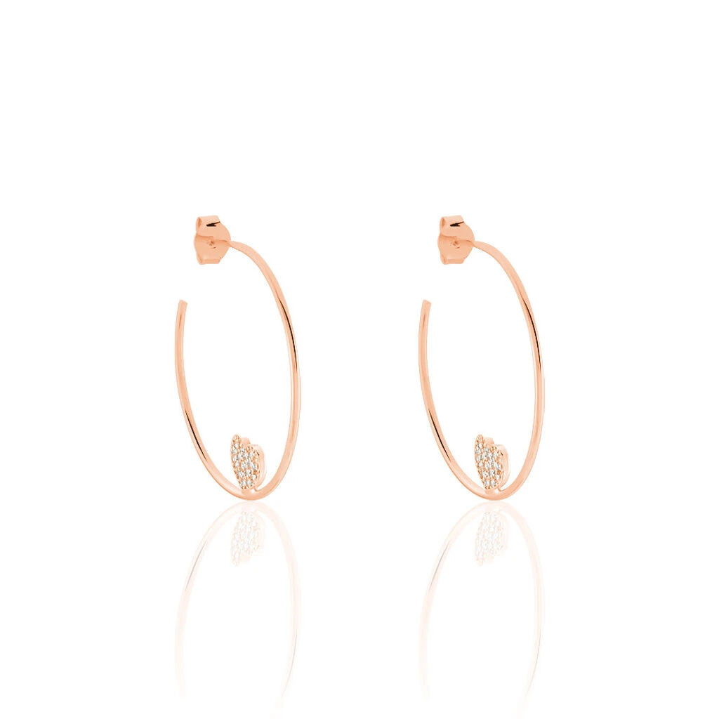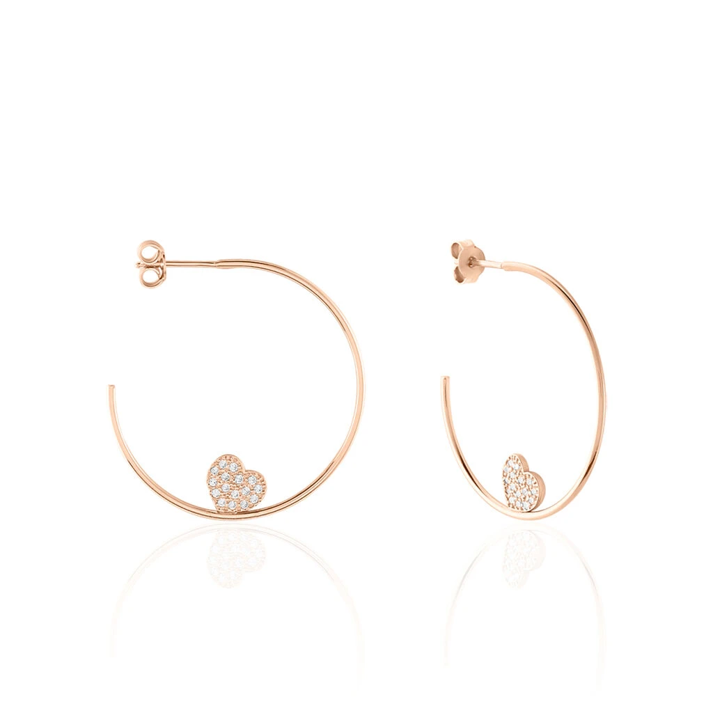 Creoles Argent 925/1000 Rose Motif Coeur Avec Oxydes De Zirconium