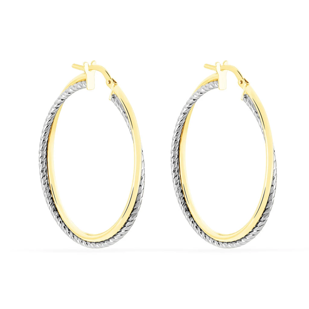 Créoles Or Bicolore 375/1000 Croisées Fils Ronds Lisse Et Torsadé Largeur 1.5mm Diamètre 30mm