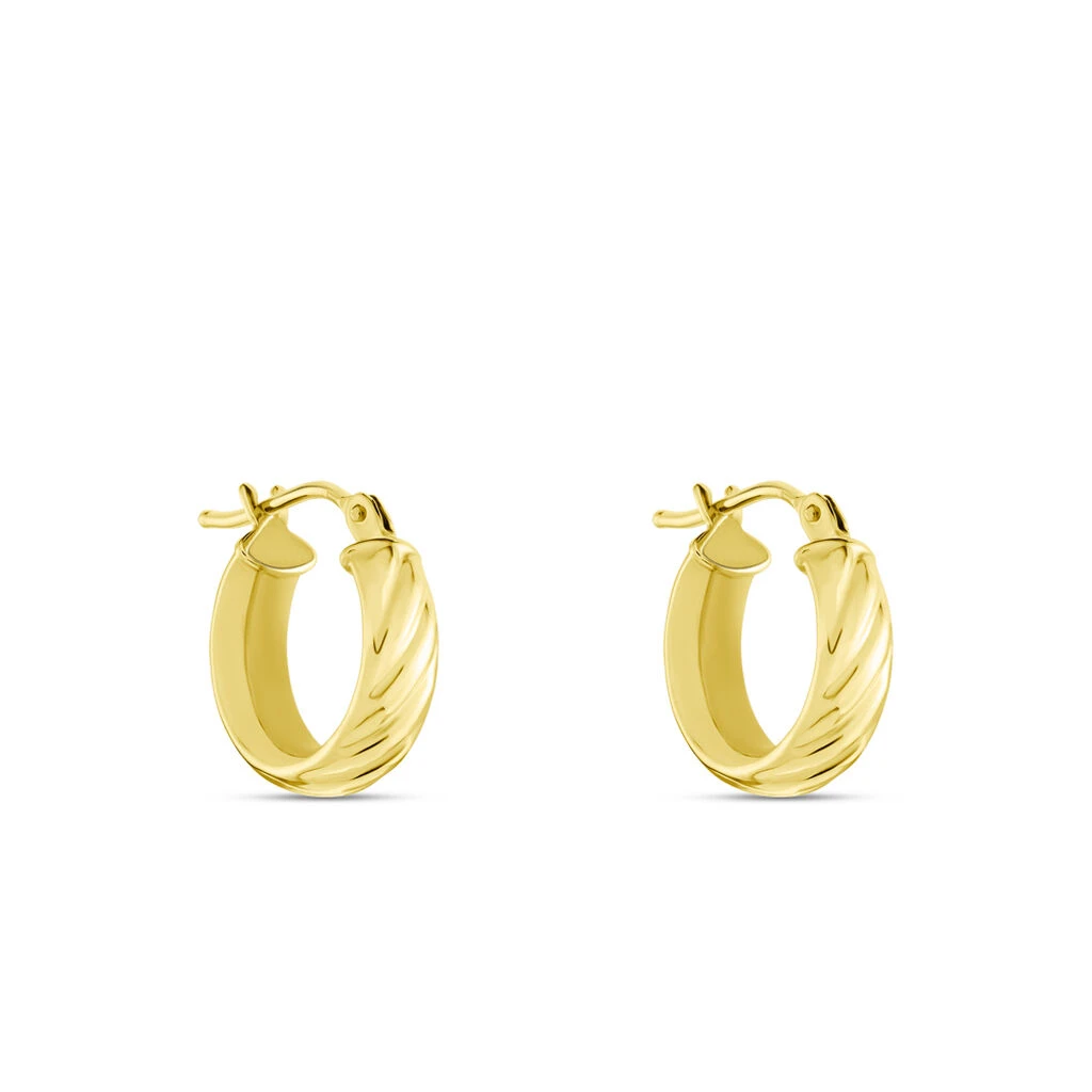 Créoles Or Jaune 375/1000 Fil Demi Jonc Strie Largeur 4mm Diamètre 8mm