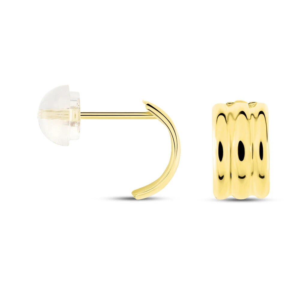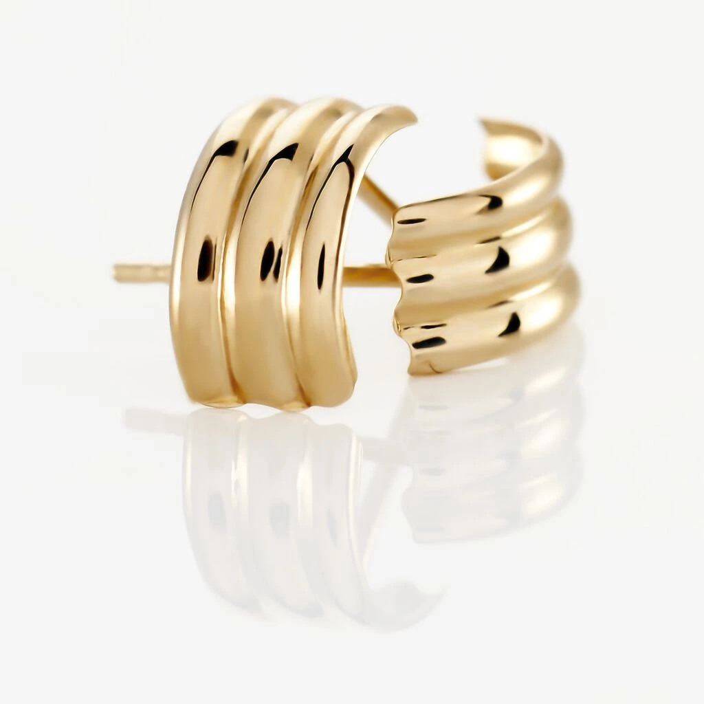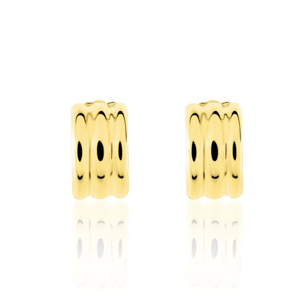 Creoles Or Jaune 375/1000 Demi Cercle Triple Rangs Lisses Diametre 9mm