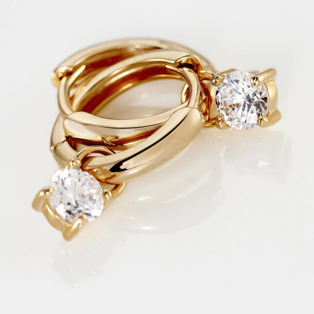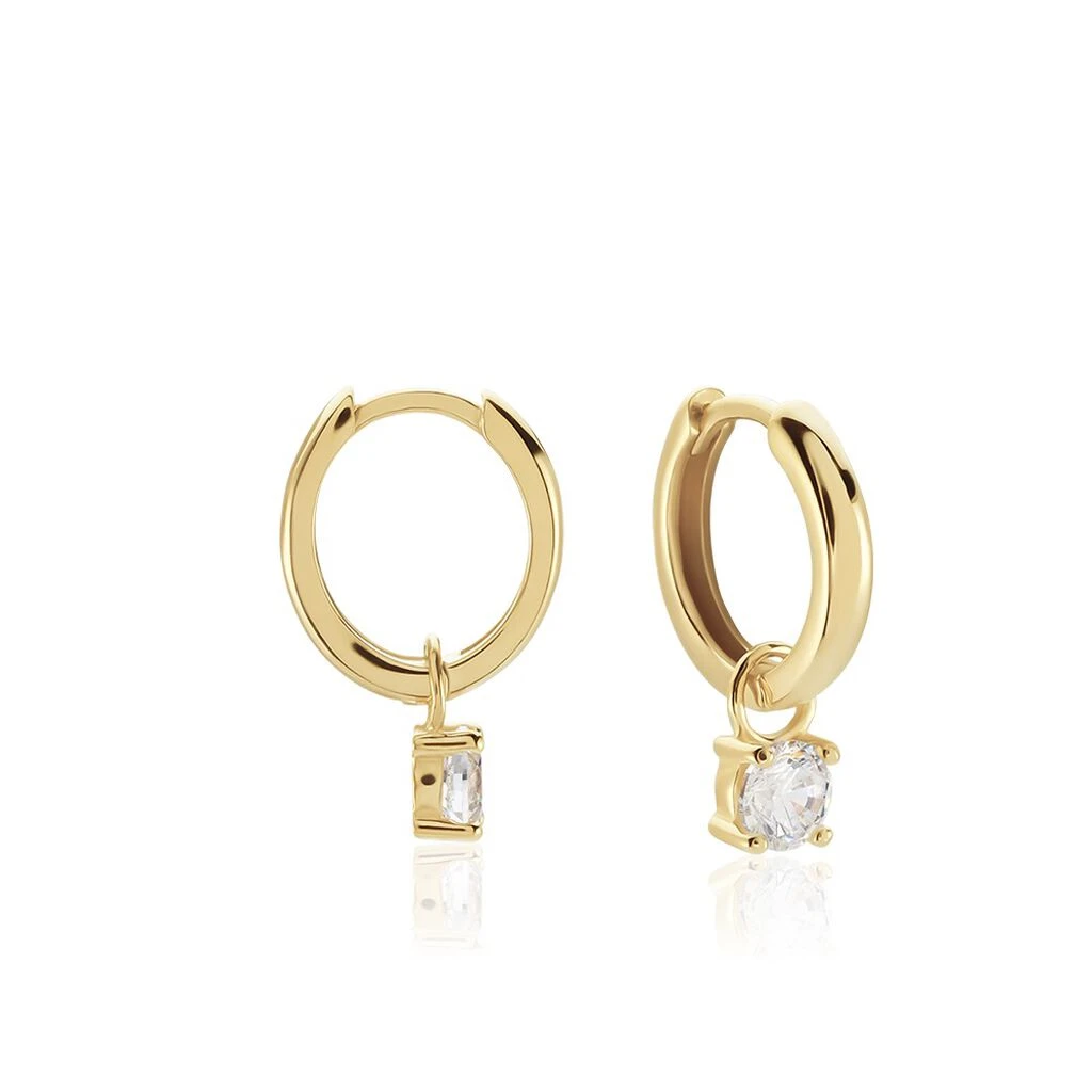 Créoles Plaqué Or Pampilles Oxydes De Zirconium Blancs Carres Diamètre 9mm