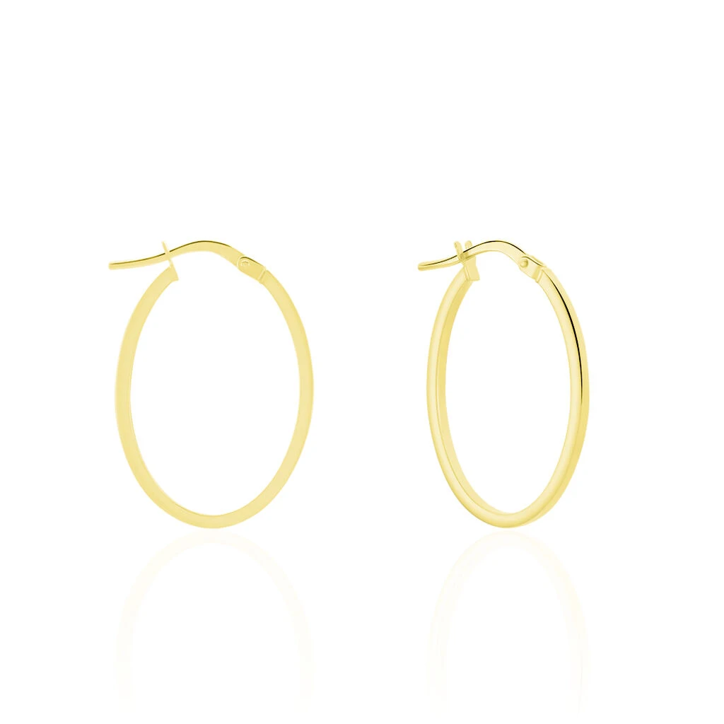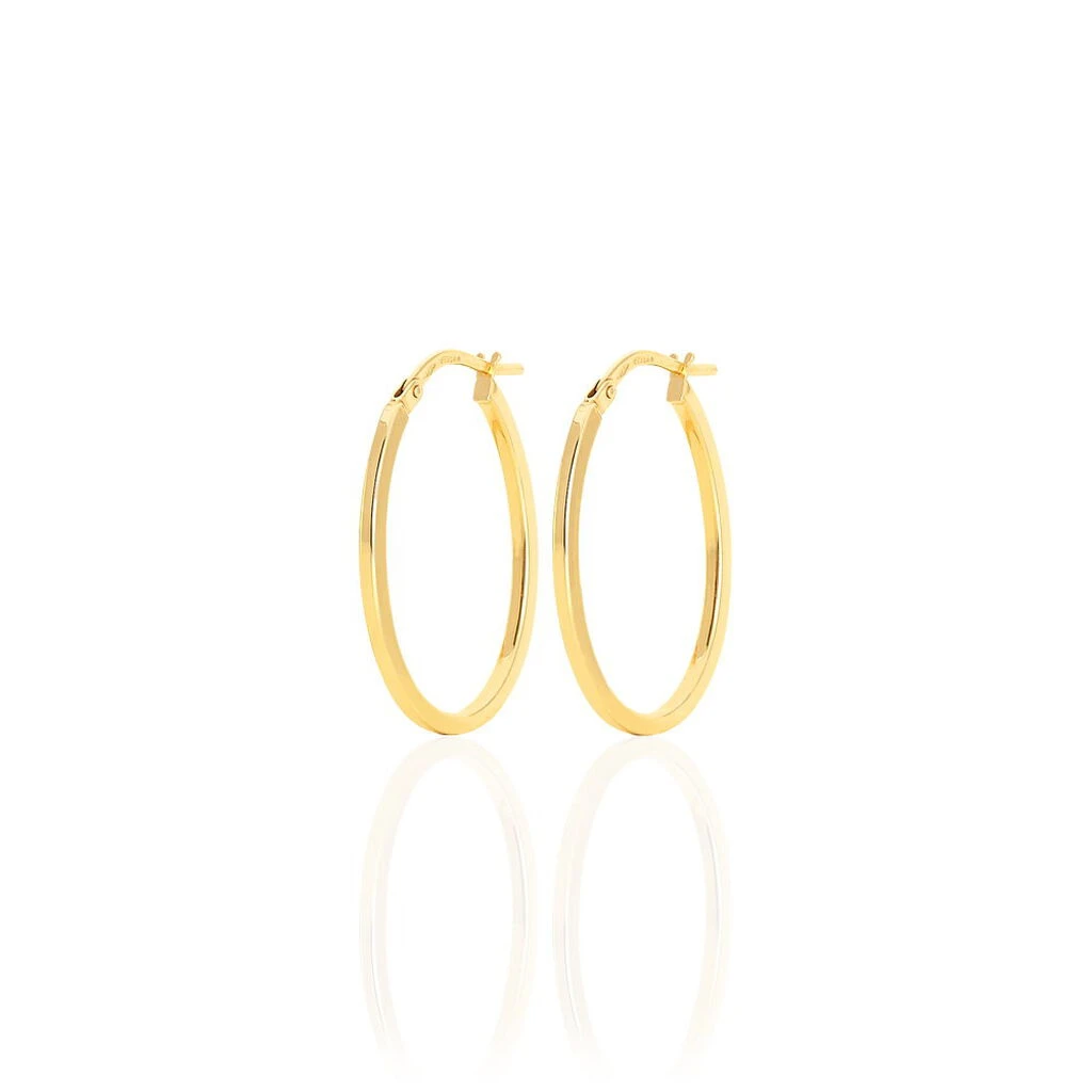 Créoles Or Jaune 375/1000 Ovales Fil Carré Lisse Largeur 1.5mm Diamètre 15x23mm