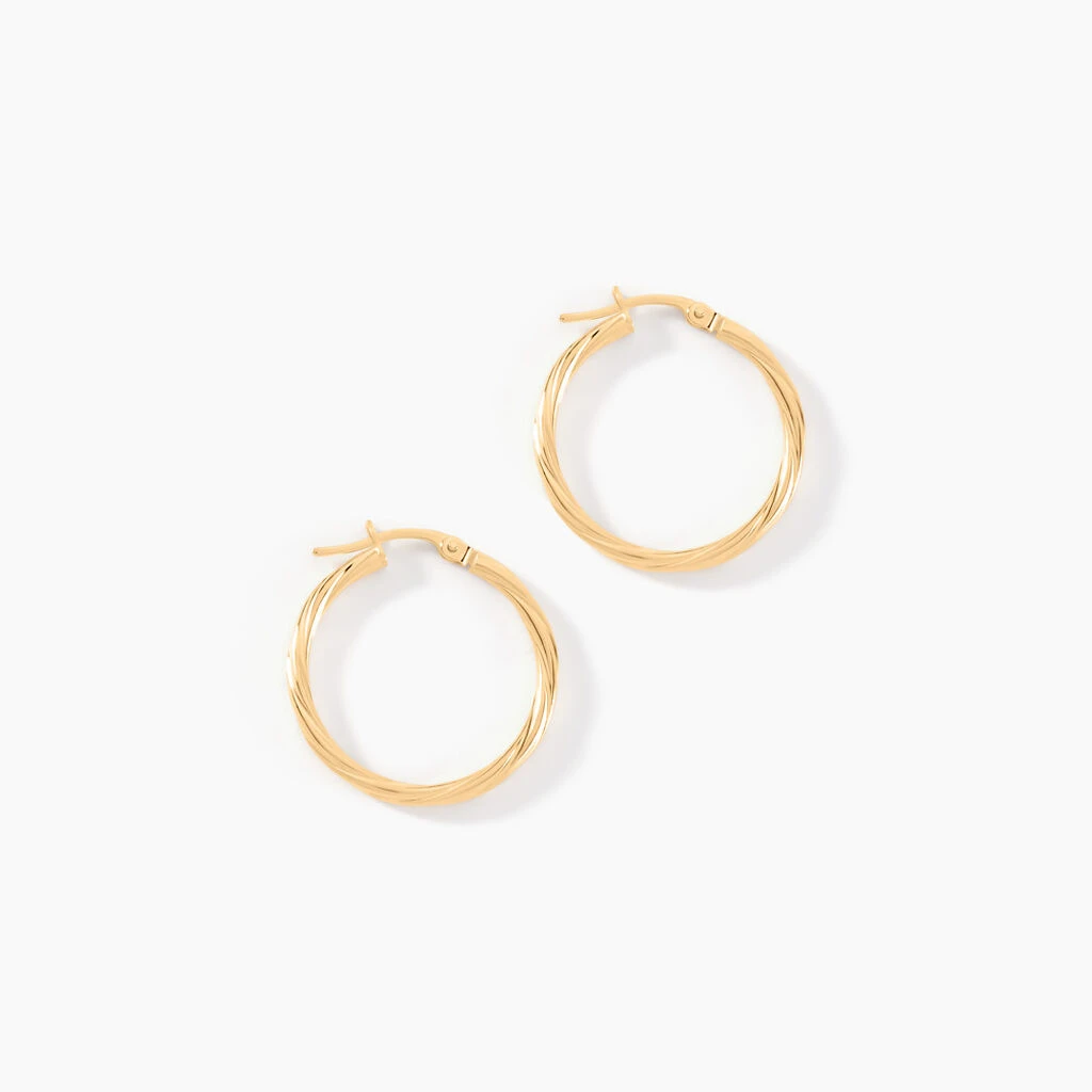 Créoles Or Jaune 375/1000 Fil Rond Torsadé Largeur 2mm Diamètre 20mm