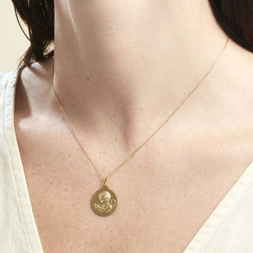 Medaille Or Jaune Ange Et Oiseau
