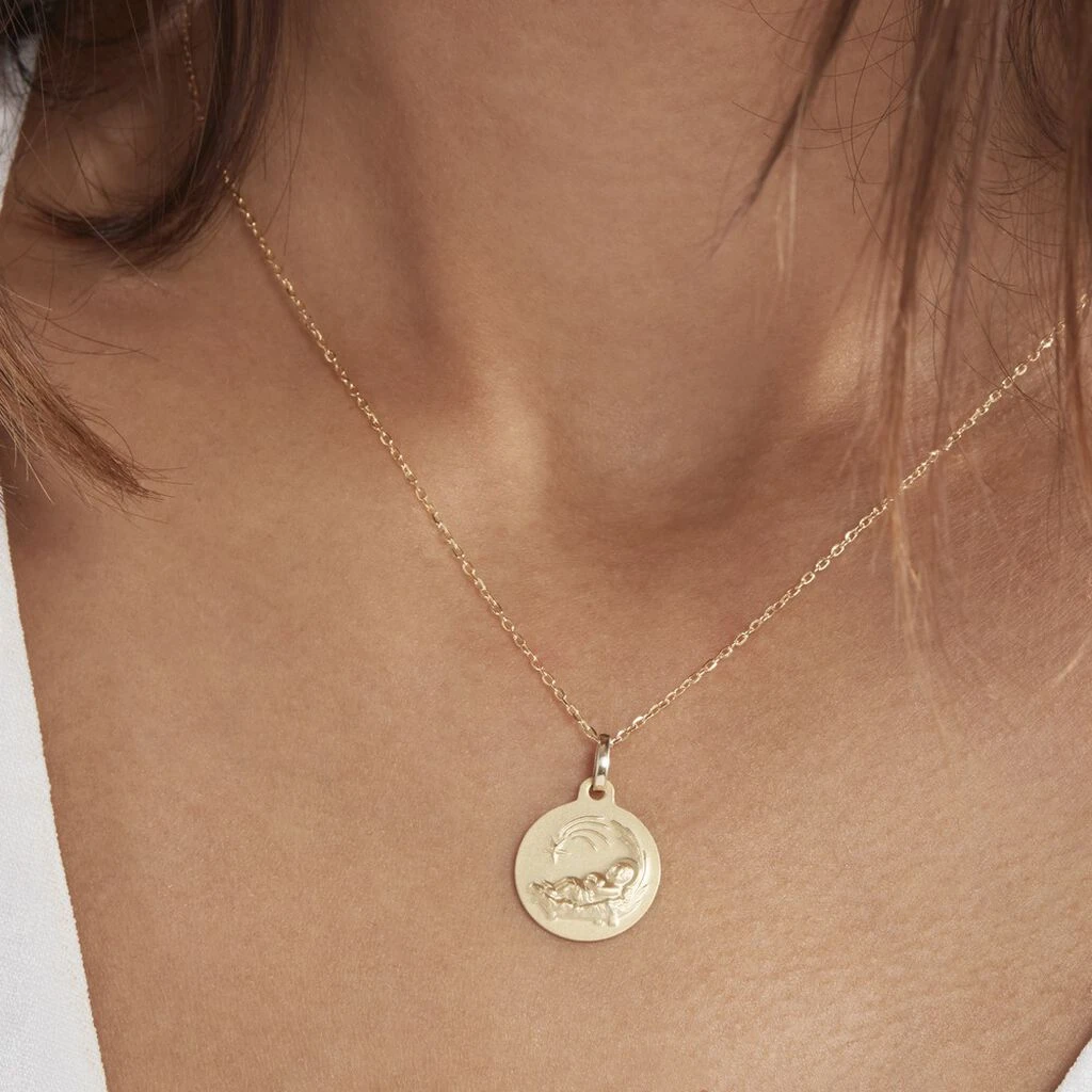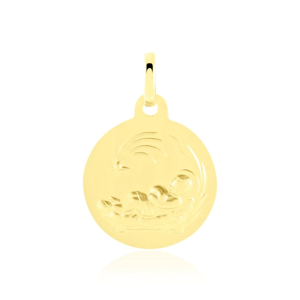 Médaille Or Jaune 375/1000 Ronde Enfant Jesus Finition Mat 16mm