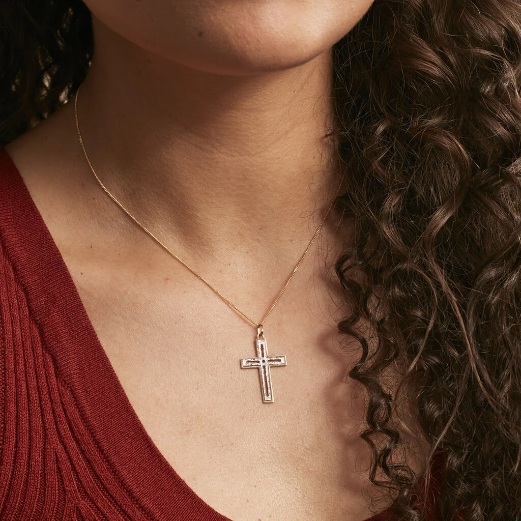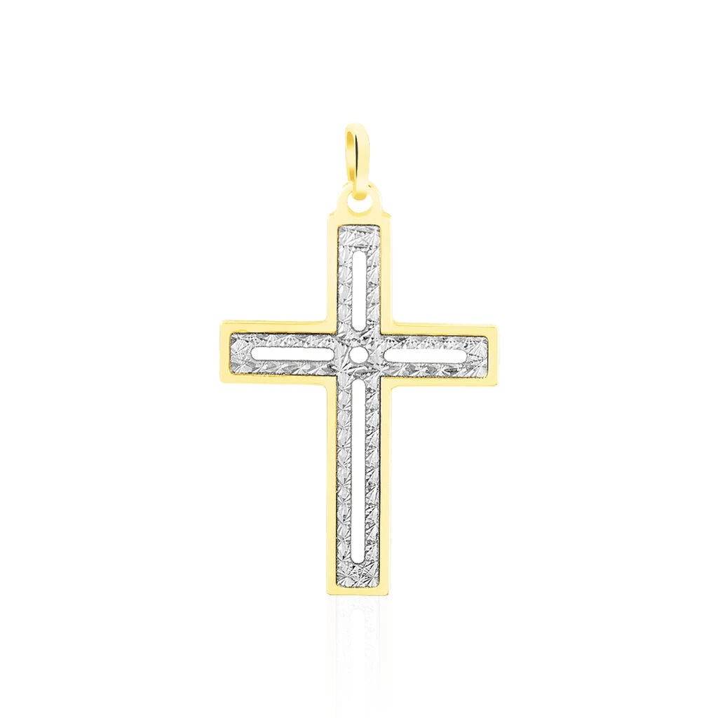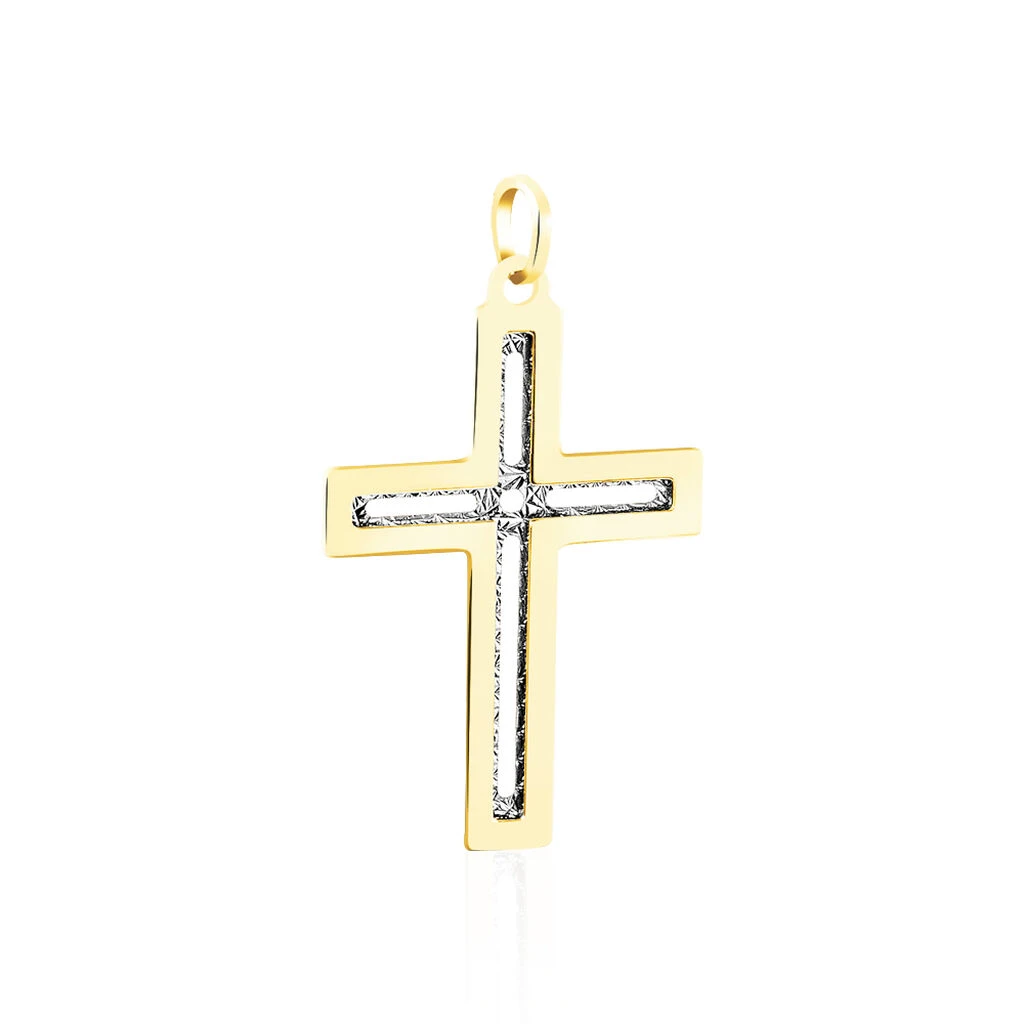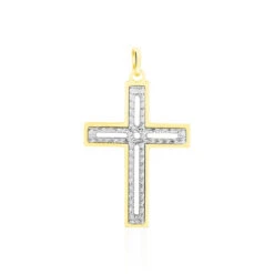 Pendentif Or Bicolore 375/1000 Motif Croix Diamantee
