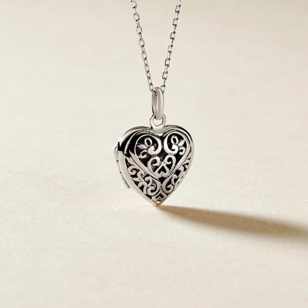 Pendentif Argent Blanc 925/1000 Cassolette Forme Coeur Motifs Arabesques Ajourees Diametre 25mm