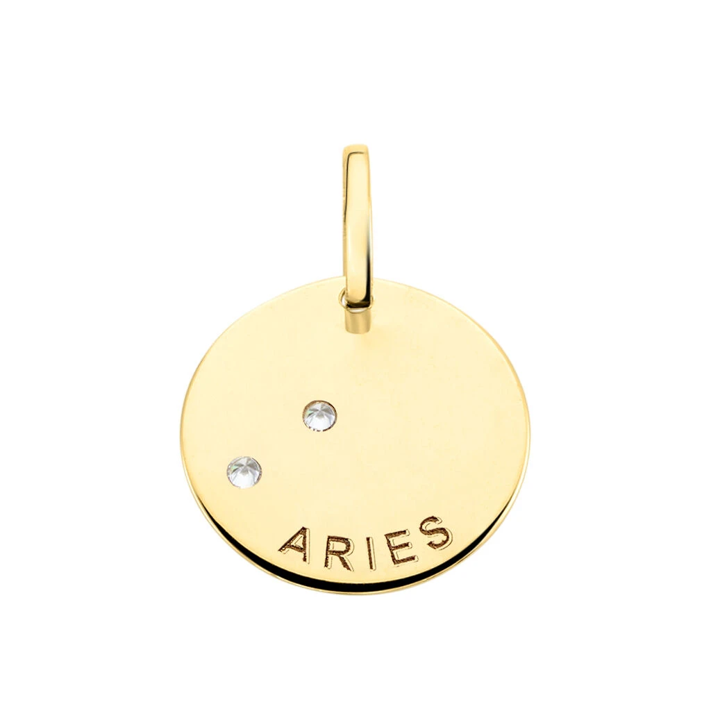 Pendentif Or Jaune 375/1000 Zodiaque Bélier Oxyde De Zirconium 0.045cts Serti Grains