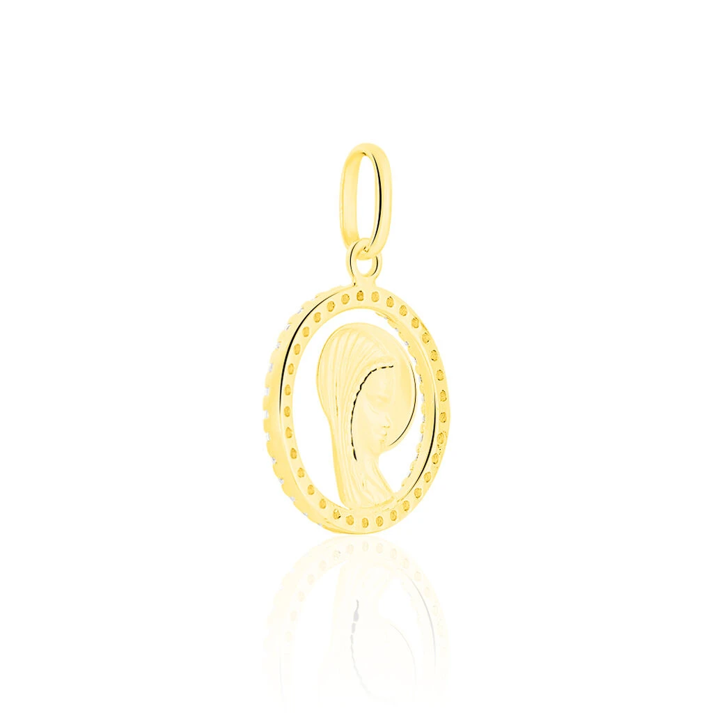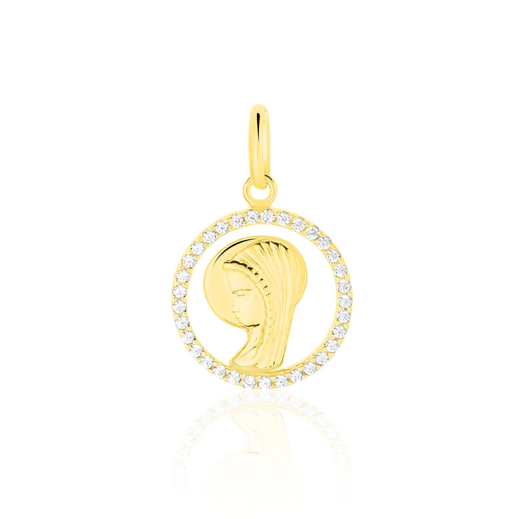 Pendentif Vierge Rond Diamante Or Jaune Oxyde De Zirconium