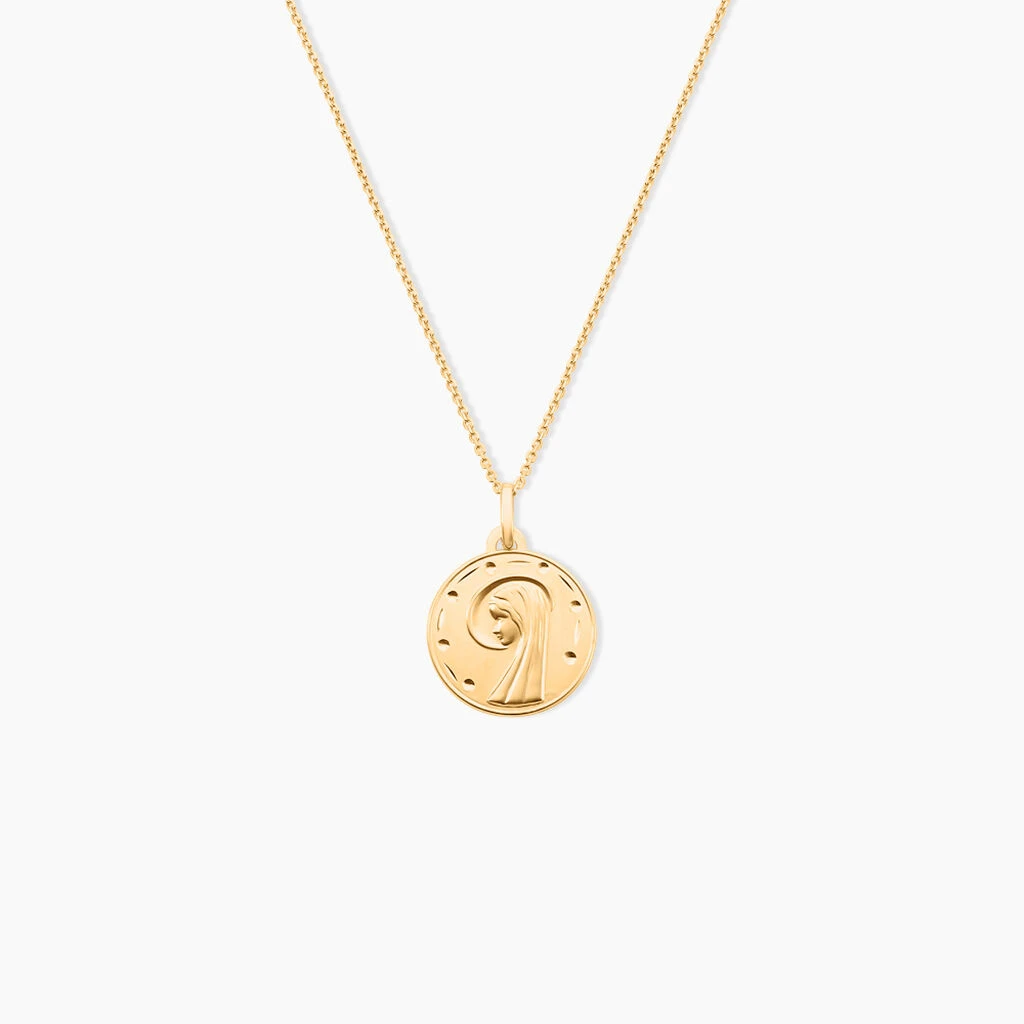 Medaille Or Jaune 375/1000 Ronde Diamantee Motif Vierge Stylisee