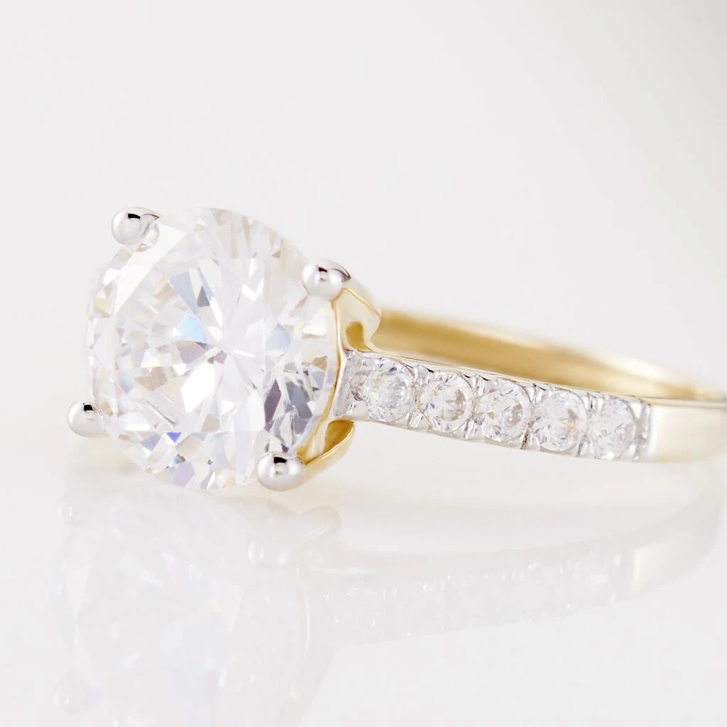 Solitaire Or Jaune 375/1000 Oxyde De Zirconium Central Rond Accompagne D’oxydes De Zirconium